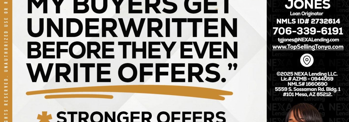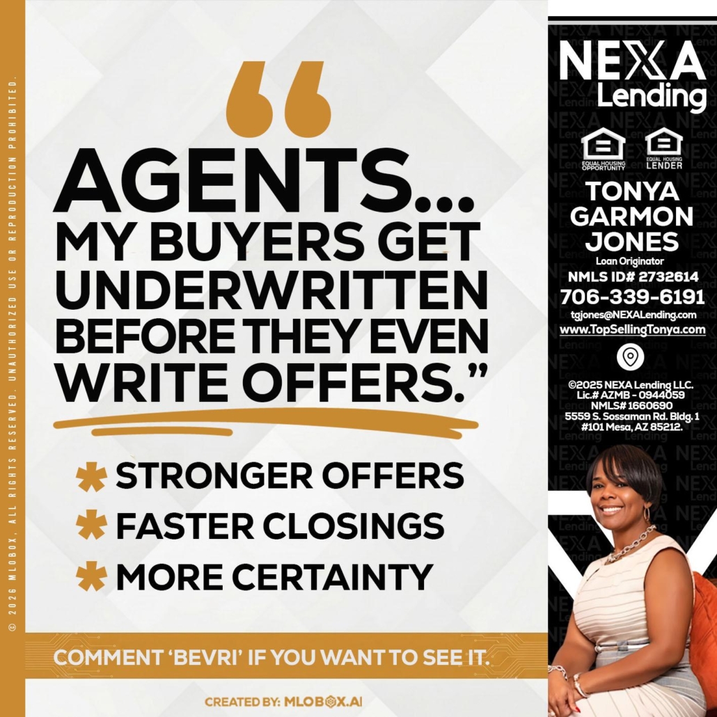 Hi, my name is Tonya Garmon Jones. I’m a Loan Officer with NEXA Lending LLC., offering personalized mortgage solutions, fast customized quotes, great rates and service with integrity.