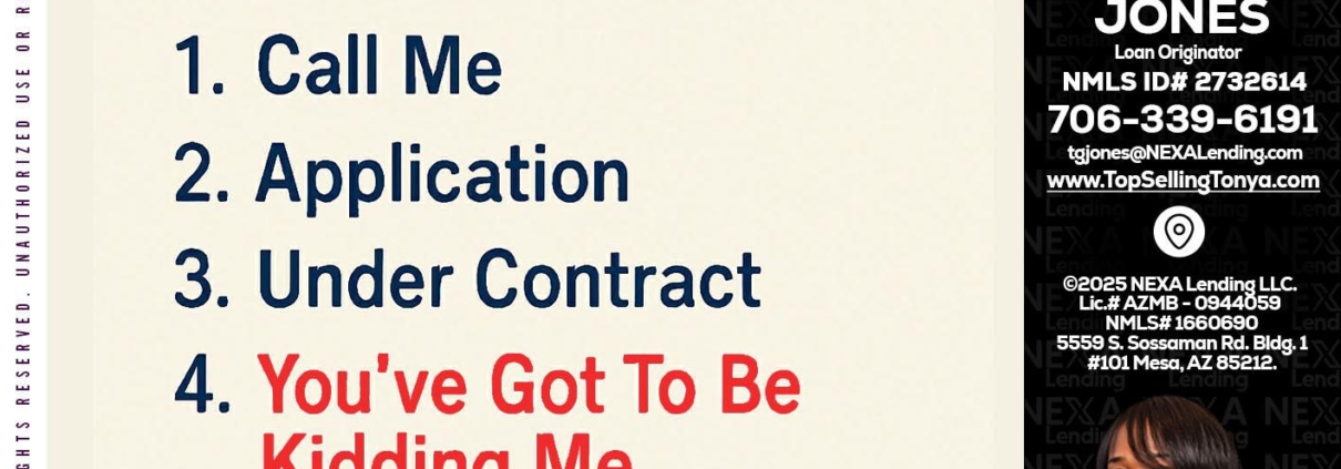 Hi, my name is Tonya Garmon Jones. I’m a Loan Officer with NEXA Lending LLC., offering personalized mortgage solutions, fast customized quotes, great rates and service with integrity.