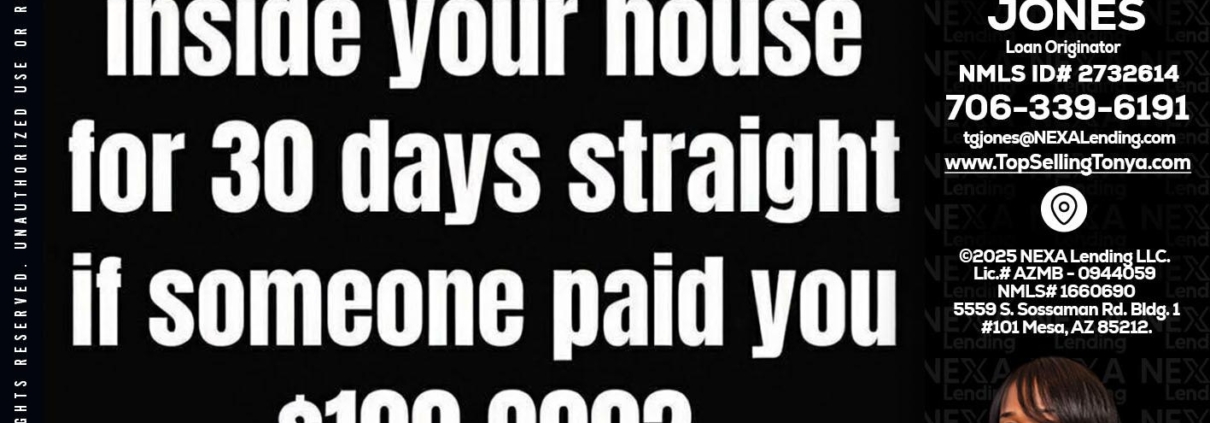 COULD YOU STAY - Tonya Garmon Jones -Loan OriginatorHi, my name is Tonya Garmon Jones. I’m a Loan Officer with NEXA Lending LLC., offering personalized mortgage solutions, fast customized quotes, great rates and service with integrity.