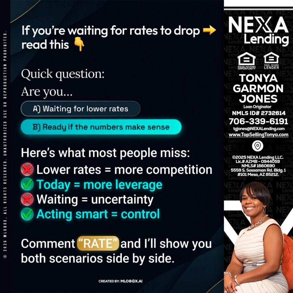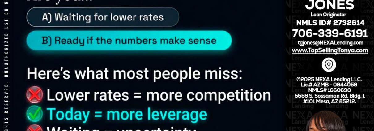 Hi, my name is Tonya Garmon Jones. I’m a Loan Officer with NEXA Lending LLC., offering personalized mortgage solutions, fast customized quotes, great rates and service with integrity.