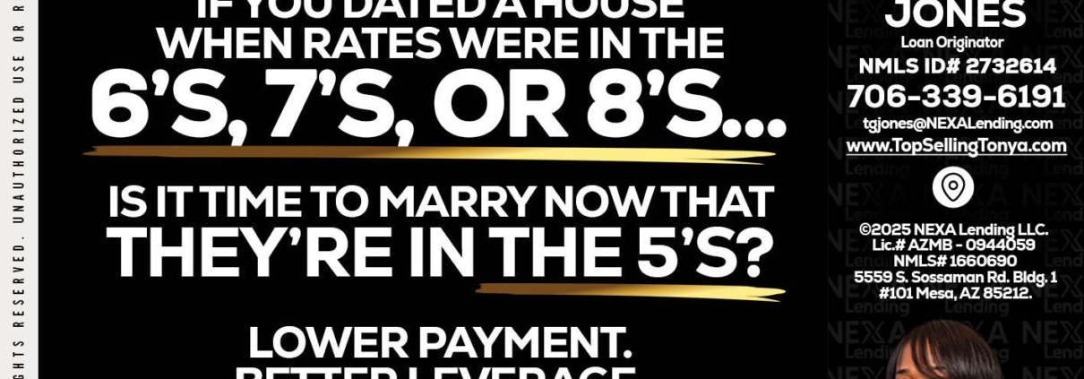 Hi, my name is Tonya Garmon Jones. I’m a Loan Officer with NEXA Lending LLC., offering personalized mortgage solutions, fast customized quotes, great rates and service with integrity.