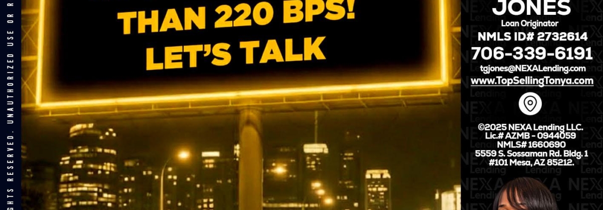 Looking for MLOs - Tonya Garmon Jones -Loan OriginatorHi, my name is Tonya Garmon Jones. I’m a Loan Officer with NEXA Lending LLC., offering personalized mortgage solutions, fast customized quotes, great rates and service with integrity.