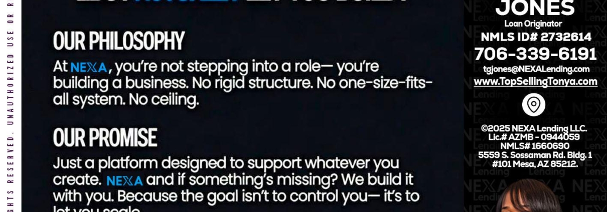Hi, my name is Tonya Garmon Jones. I’m a Loan Officer with NEXA Lending LLC., offering personalized mortgage solutions, fast customized quotes, great rates and service with integrity.