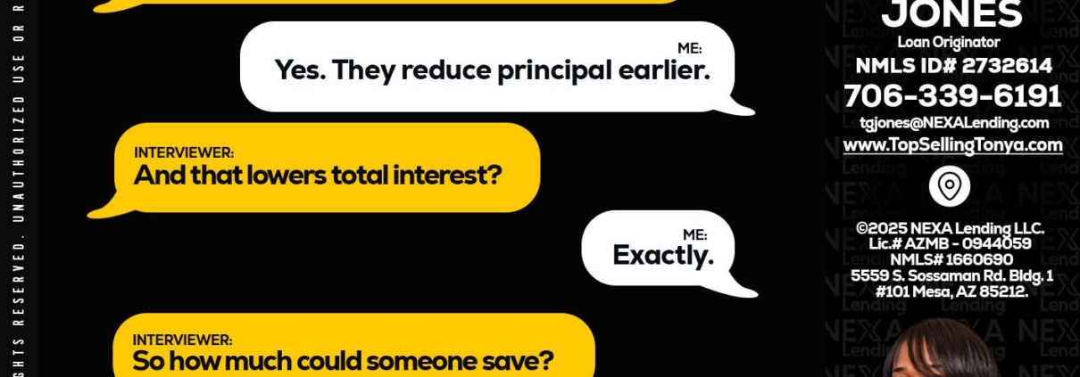 Hi, my name is Tonya Garmon Jones. I’m a Loan Officer with NEXA Lending LLC., offering personalized mortgage solutions, fast customized quotes, great rates and service with integrity.