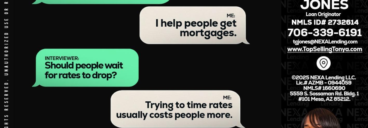 Hi, my name is Tonya Garmon Jones. I’m a Loan Officer with NEXA Lending LLC., offering personalized mortgage solutions, fast customized quotes, great rates and service with integrity.