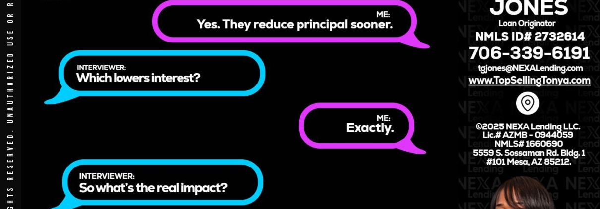 RAPID QA - Tonya Garmon Jones -Loan OriginatorHi, my name is Tonya Garmon Jones. I’m a Loan Officer with NEXA Lending LLC., offering personalized mortgage solutions, fast customized quotes, great rates and service with integrity.