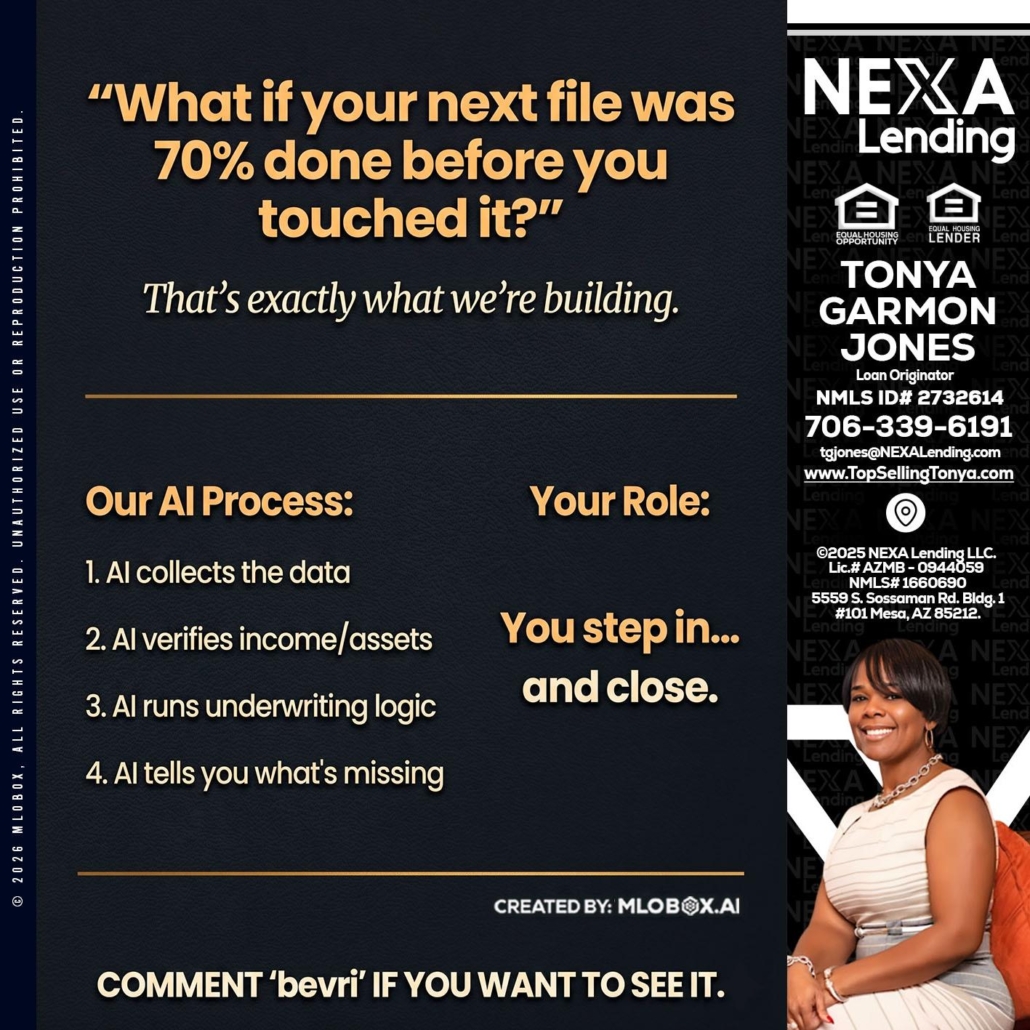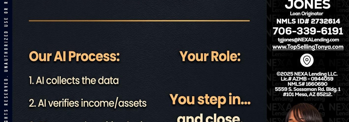Hi, my name is Tonya Garmon Jones. I’m a Loan Officer with NEXA Lending LLC., offering personalized mortgage solutions, fast customized quotes, great rates and service with integrity.